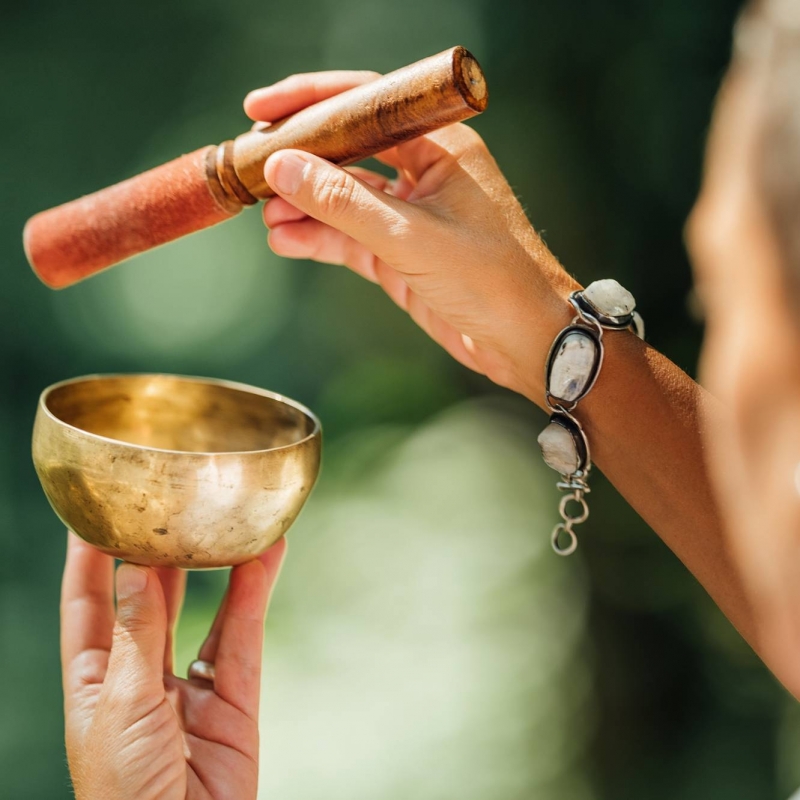 Voyage Sonore : Les instruments prennent le relais : bols tibétains, gong… Les sons varient en intensité en rythment en fréquence. Les vibrations traversent le corps, relâche les tensions physiques et mentales. Le cerveau passe peu a peu en état médiatif profond.